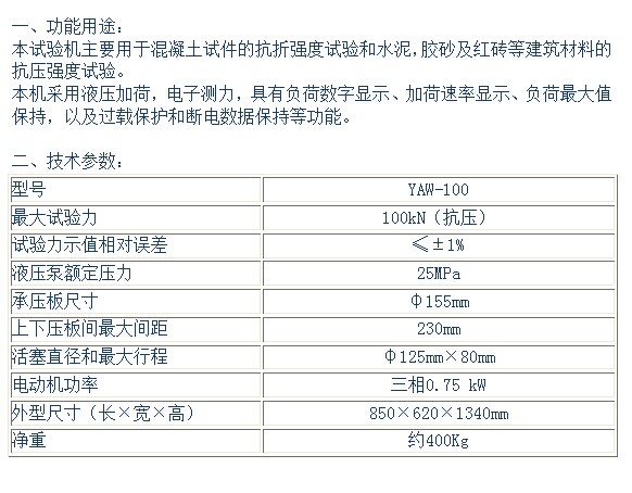 YAW-100型电液式压力试验机